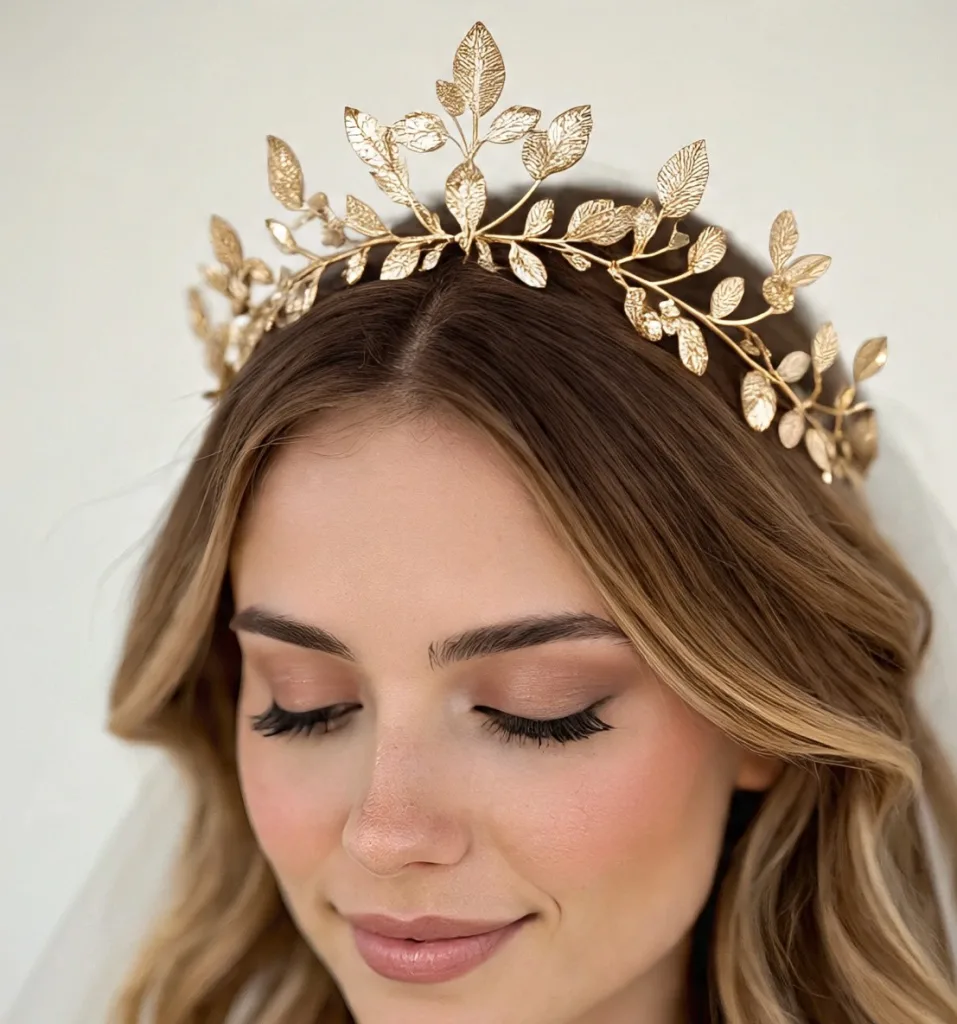 Lightweight and whimsical, it blends beautifully with lace gowns and braided hairstyles. If you’re aiming for a dreamy, feminine aesthetic, this crown gives you fairy-tale energy with a gentle touch.